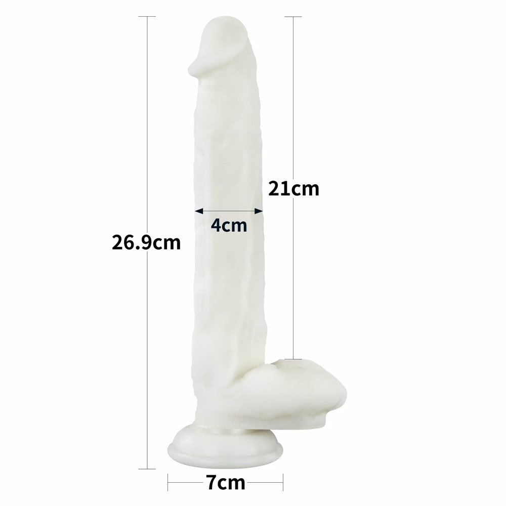 felületű, herékkel kiegészített dildó. Ajánlott napközben fénynek kitenni