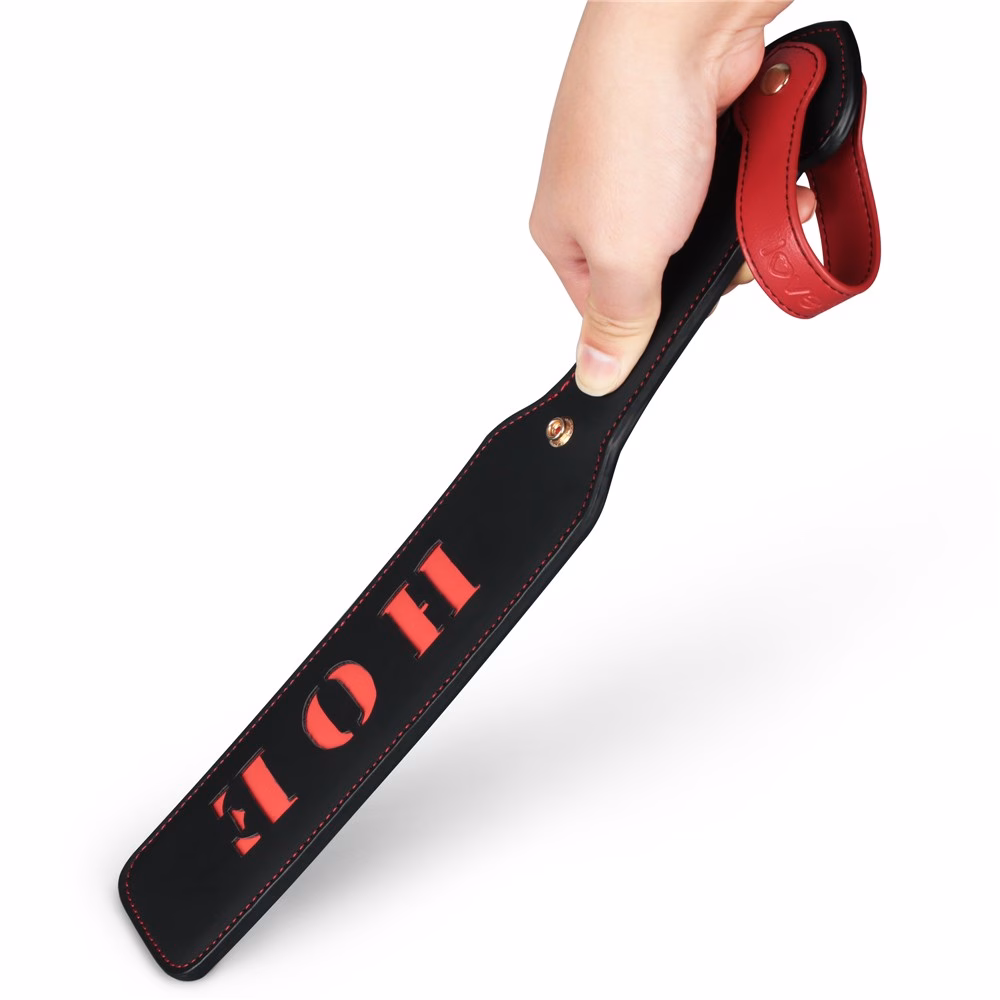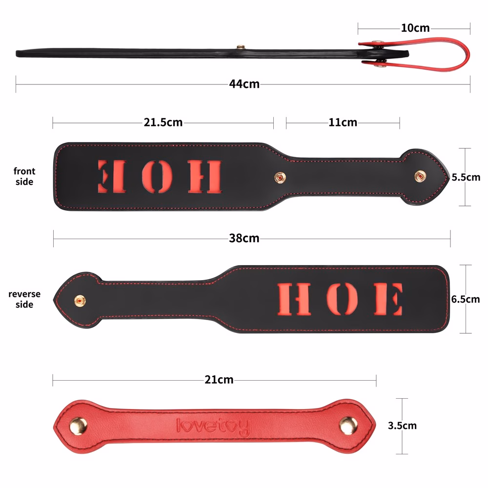 kínálja. Az paskoló mindkét oldalán a kivágott „HOE” szó látható, egy provokatív