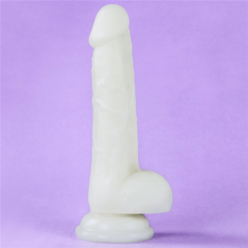 felületű, herékkel kiegészített dildó. Ajánlott napközben fénynek kitenni