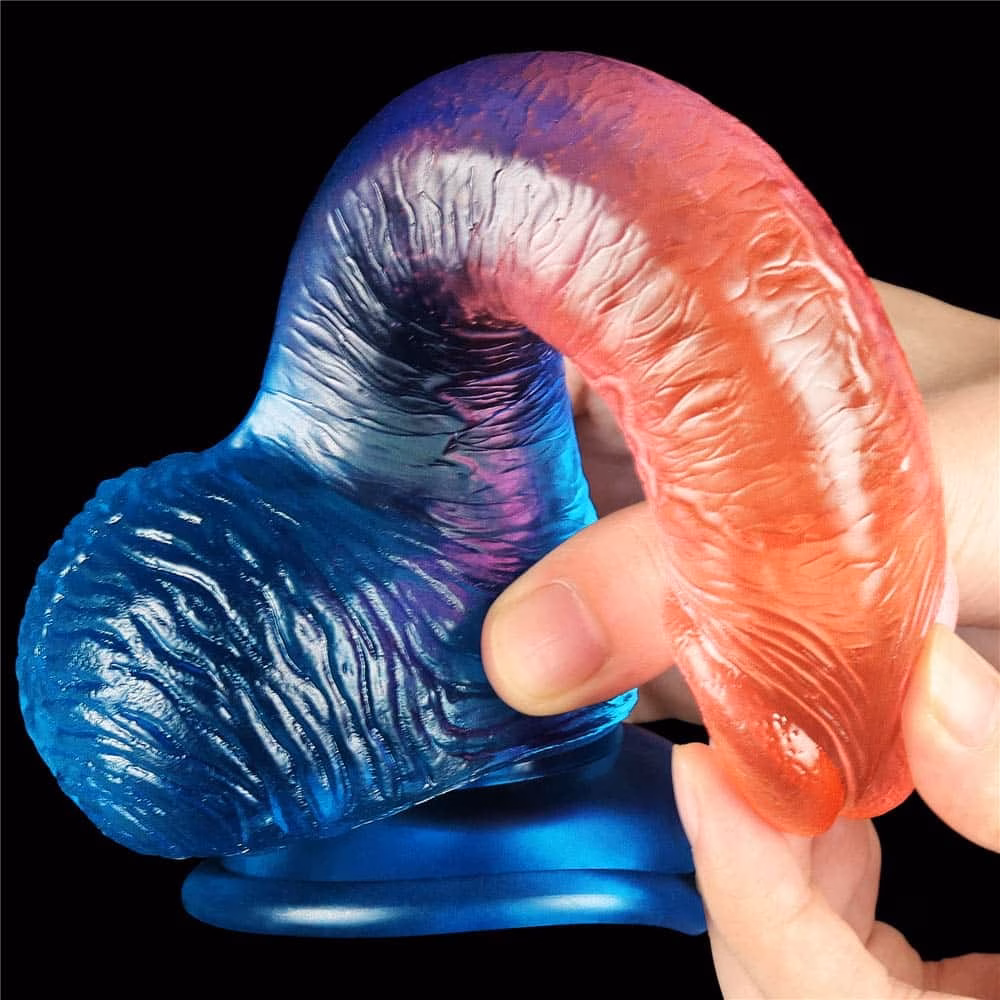 Rugalmas, pénisz formájú, testszövethez hasonló, bőrszerű tapintású anyagból készült, színes, motor nélküli, erezett felületű, herékkel kiegészített dildó. Tapadókorongja segítségével sík felületre rögzíthető.