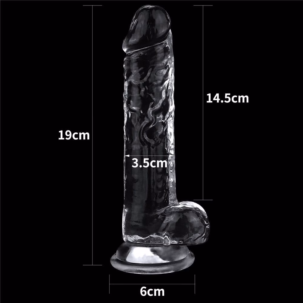 Realisztikus kialakítású, puha anyagból készült, rugalmas, átlátszó, erezett felületű, herékkel kiegészített dildó. Tapadókorongja segítségével sík felületre rögzíthető.