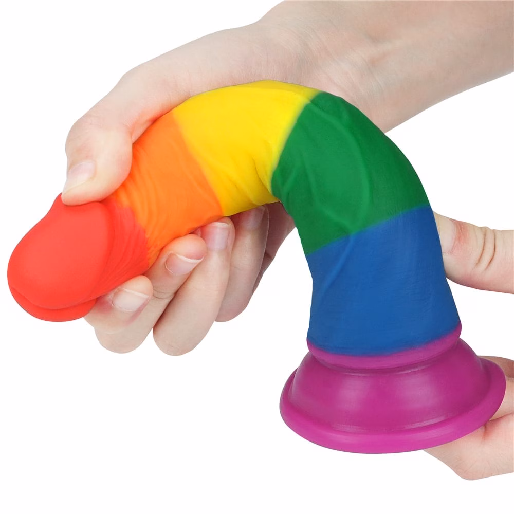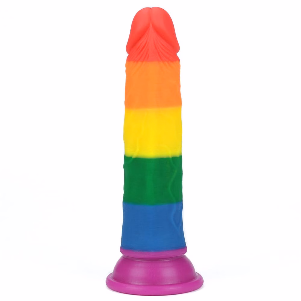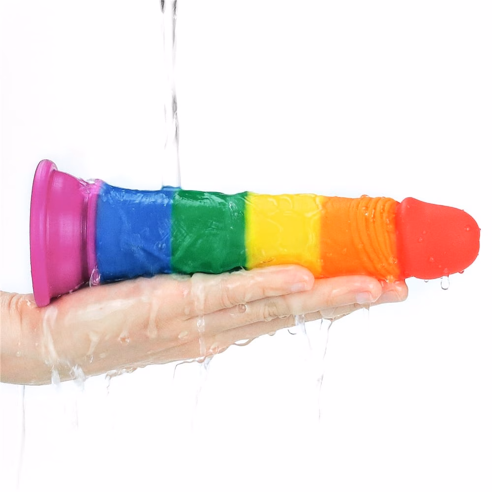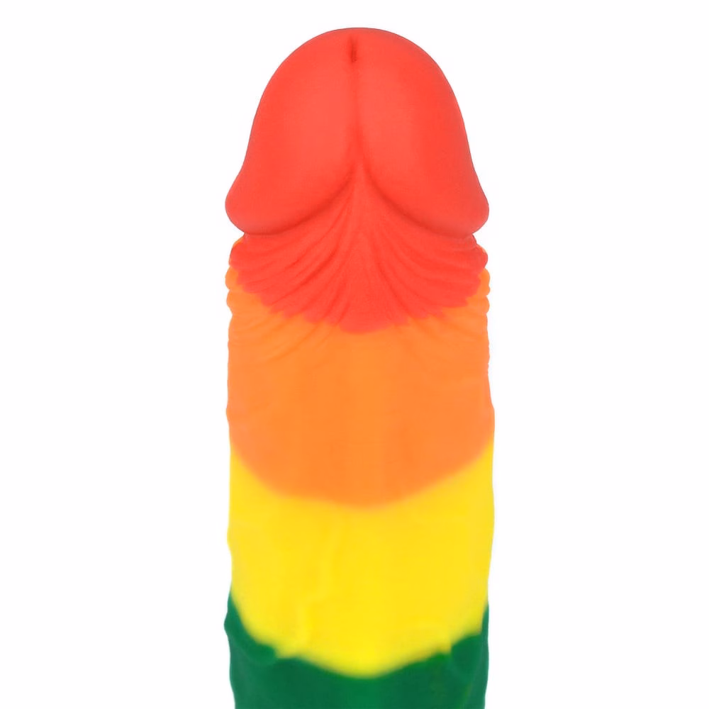 Szivárvány színű, egyedi formájú, kiváló minőségű szilikonból készített, erezett felületű, flexibilis, motor nélküli dildó. Tapadókorongja segítségével sík felületen rögzíthető.