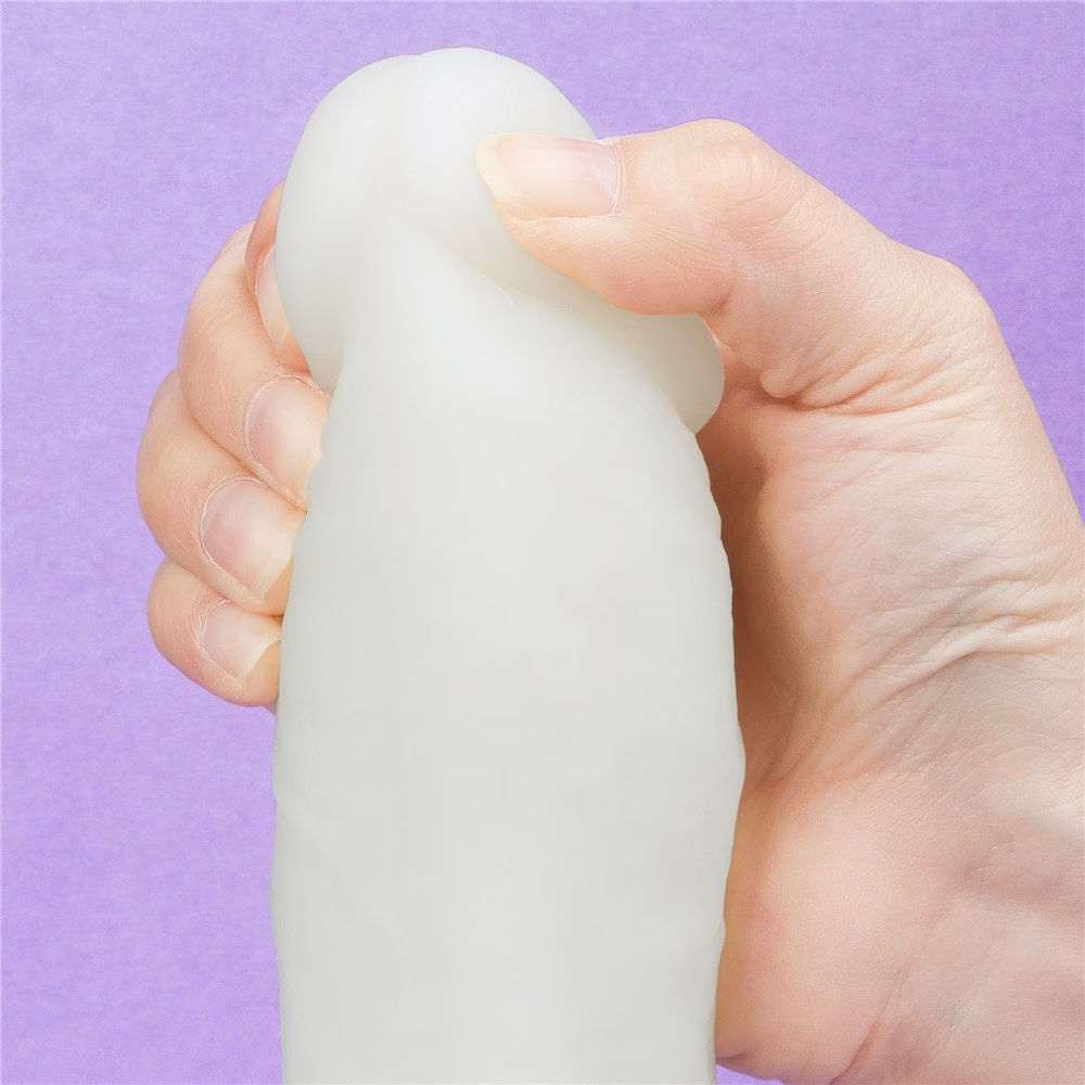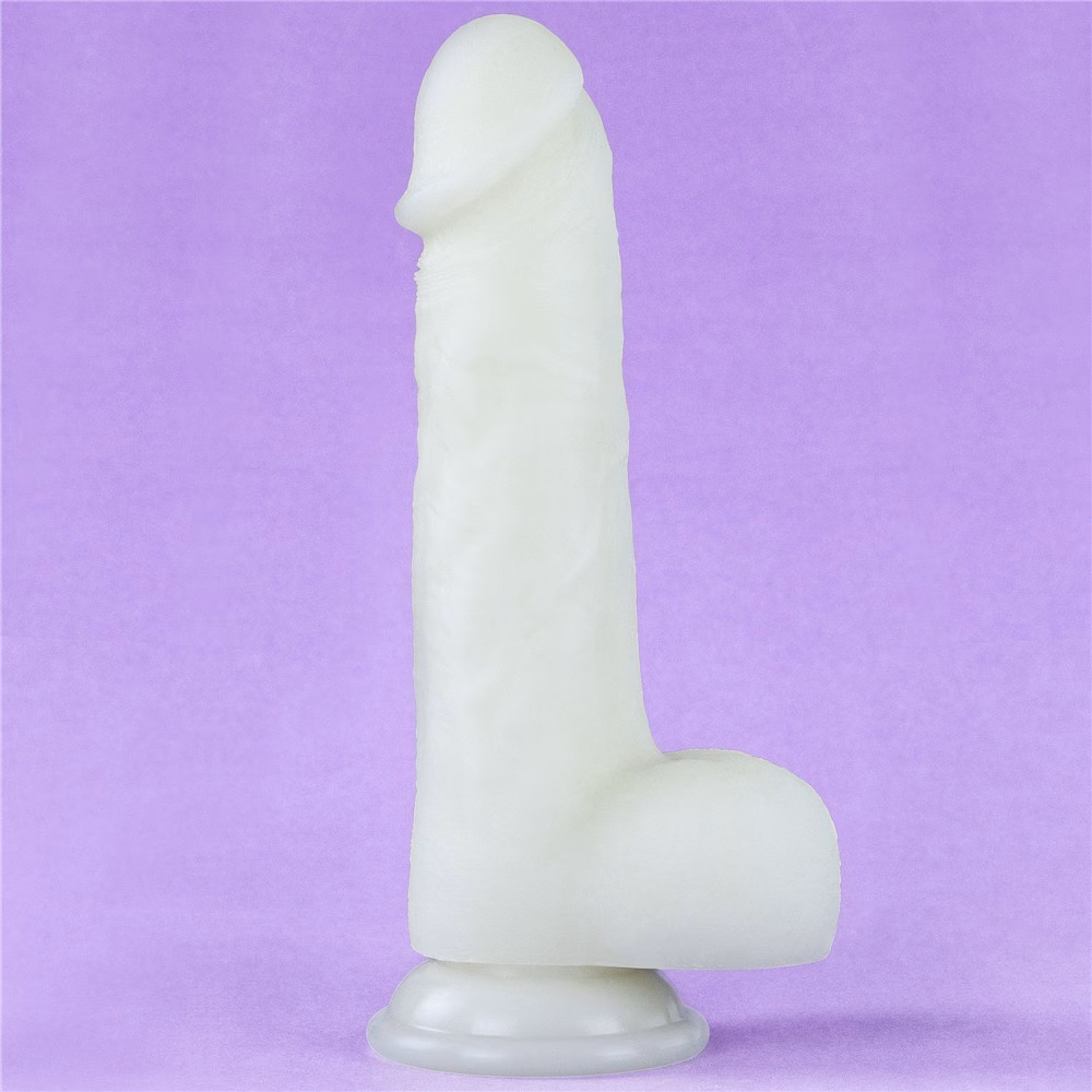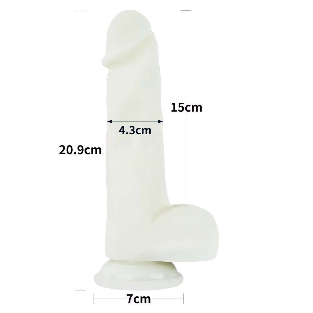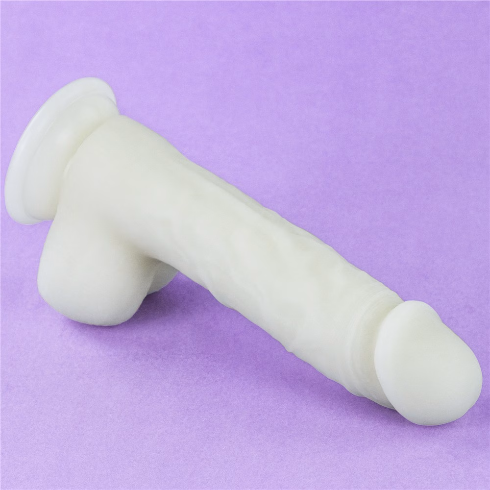 felületű, herékkel kiegészített dildó. Ajánlott napközben fénynek kitenni