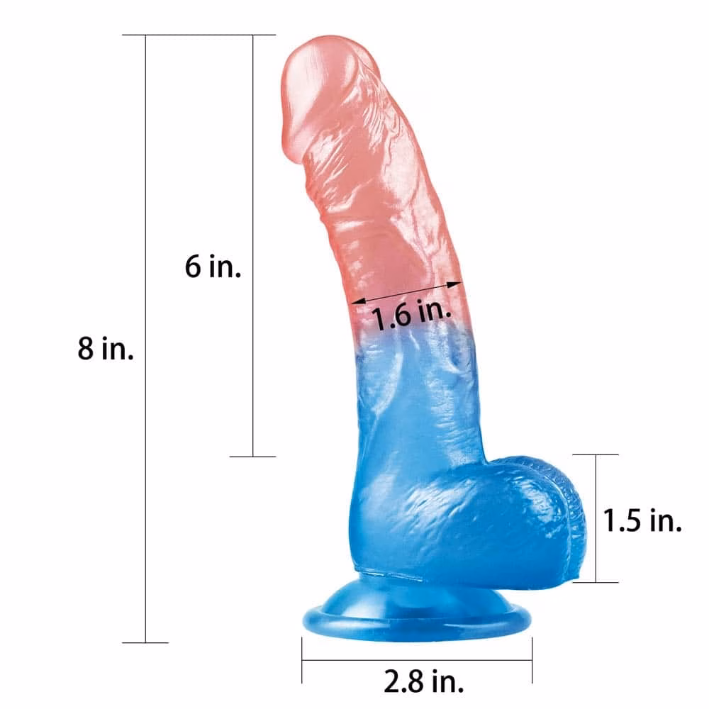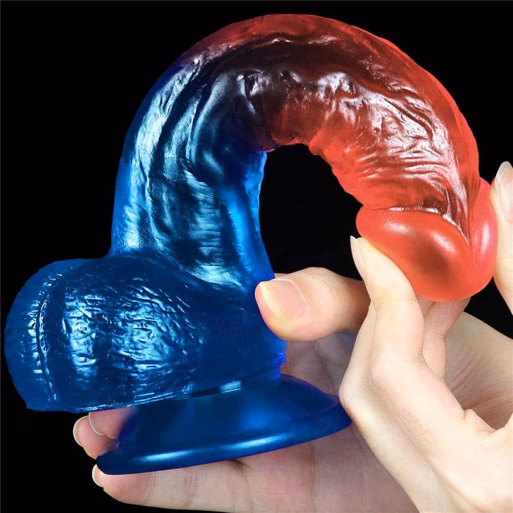 Ivelt kialakítású, rugalmas, pénisz formájú, testszövethez hasonló, bőrszerű tapintású anyagból készült, színes, motor nélküli, erezett felületű, herékkel kiegészített dildó. Tapadókorongja segítségével sík felületre rögzíthető.