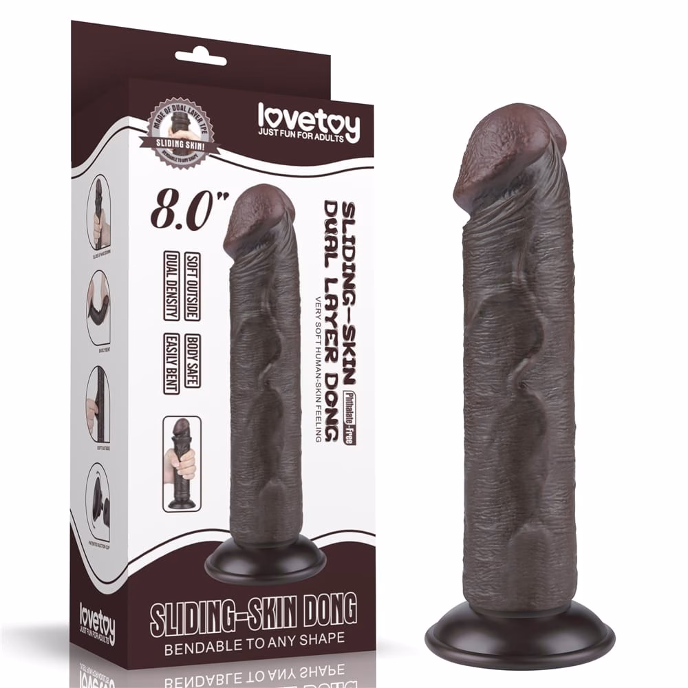 8” Sliding Skin Dual Layer Dong Black II dildó
