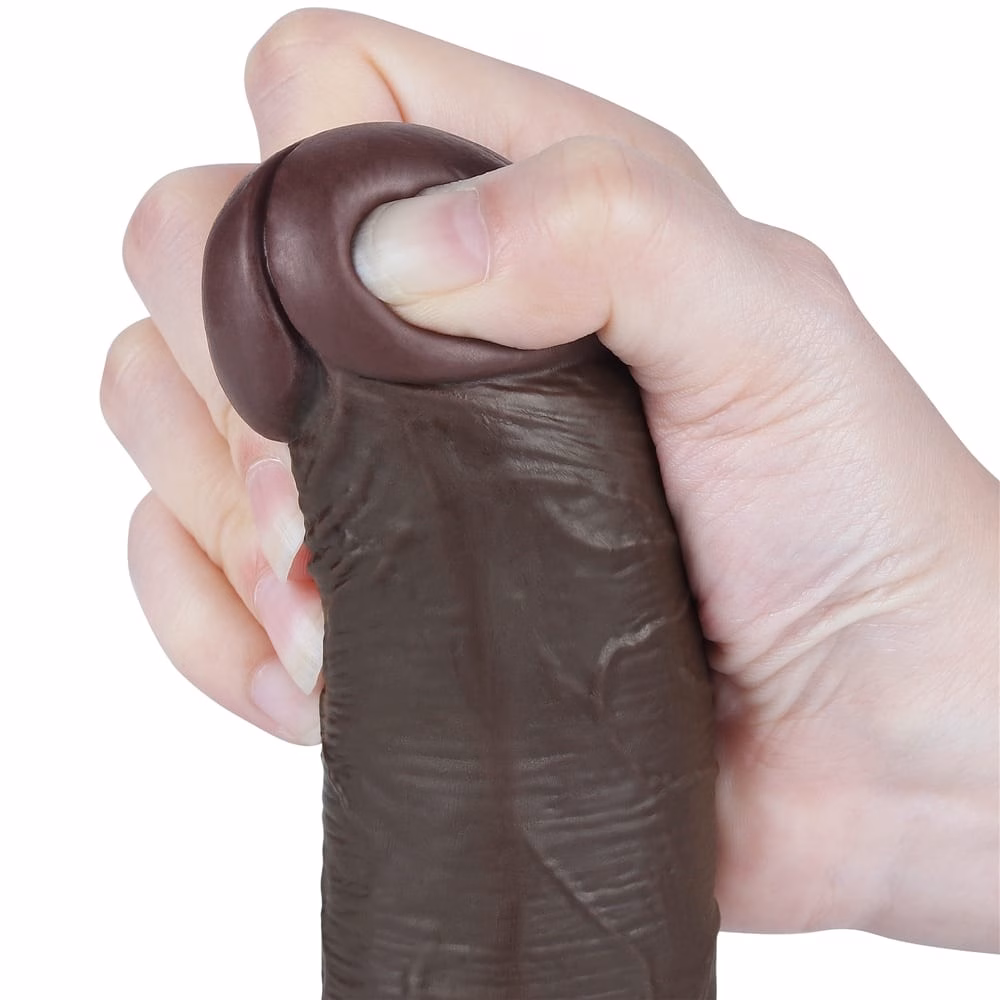 8” Sliding Skin Dual Layer Dong Black III dildó