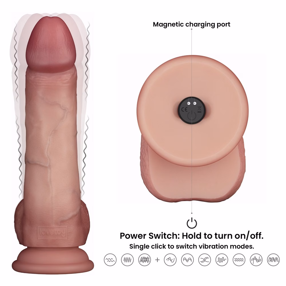 8″ Vibrating Sliding Skin Pro II Silicone Dong