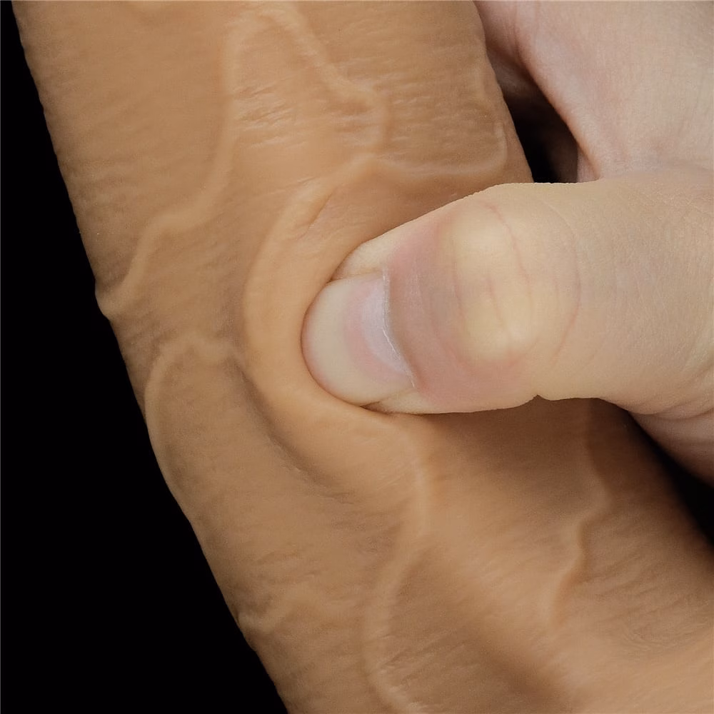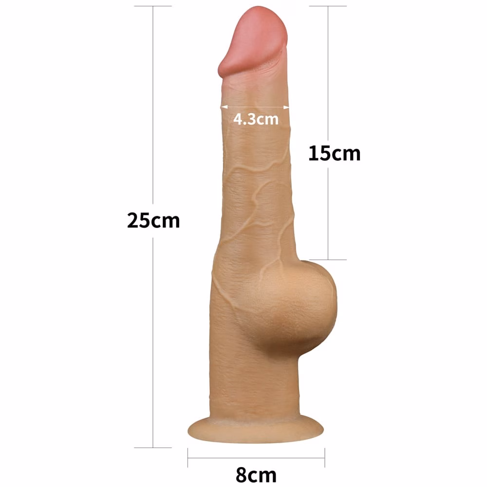 Pénisz formájú, lágy külső réteggel és kemény belső maggal rendelkező, testszövethez hasonló, bőrszerű tapintású anyagból készült, motor nélküli, erezett felületű, herékkel kiegészített, hajlítható, dupla rétegű, egyedülálló, kényelmes fogantyús kialakítással ellátott dildó. Tapadókorongja segítségével sík felületre rögzíthető. A fogantyú hossza 3,5 cm.
