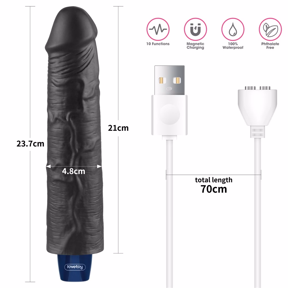 9.5″ REAL SOFTEE Rechargeable Vibrating Dildo(Black) realisztikus vibrátor