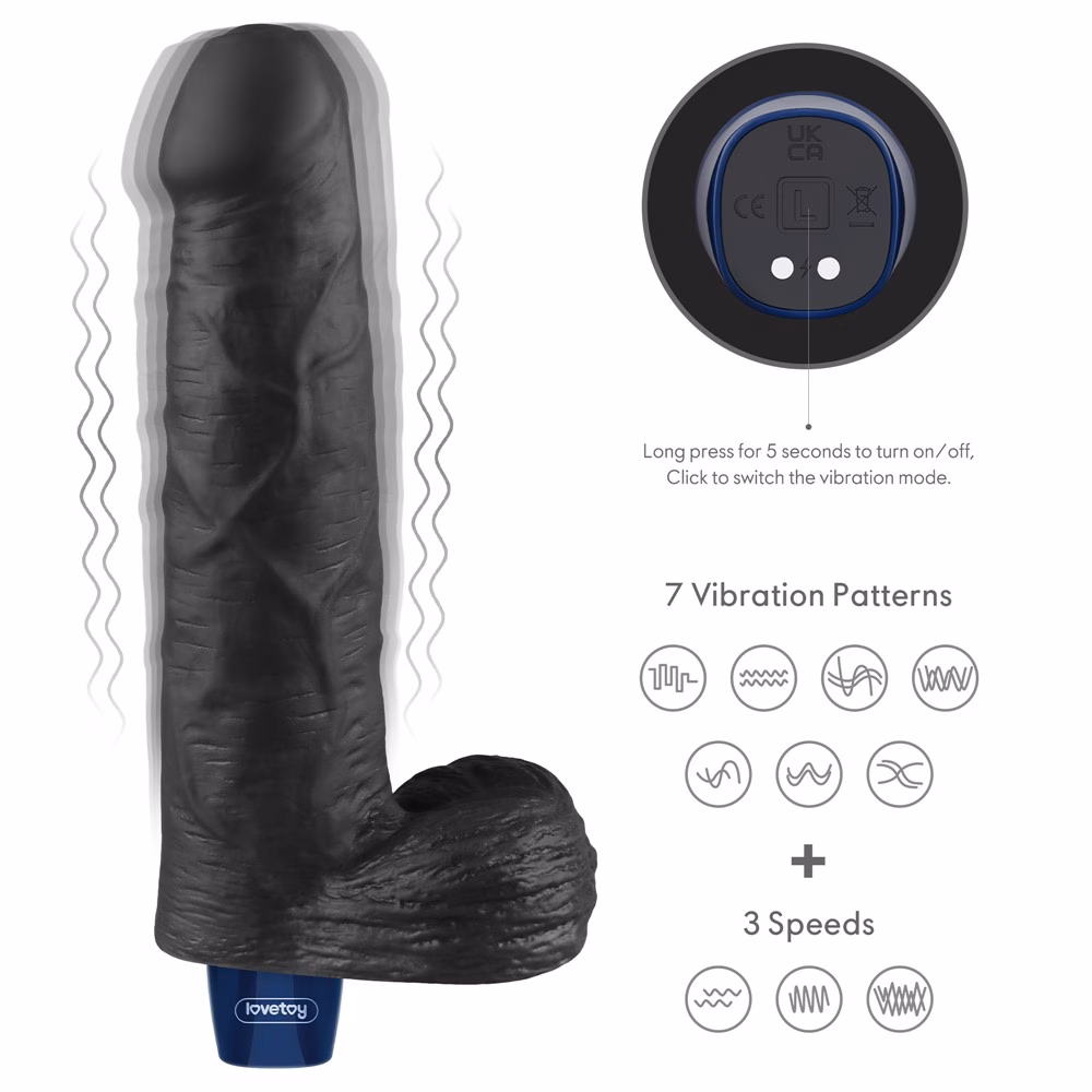 9″ REAL SOFTEE Rechargeable Vibrating Dildo(Black) realisztikus vibrátor