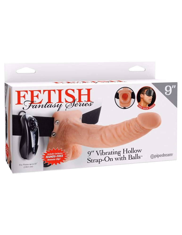 9″ Vibrating Hollow Strap-On with Balls Light/Black felcsatolható vibrációs üreges dildó