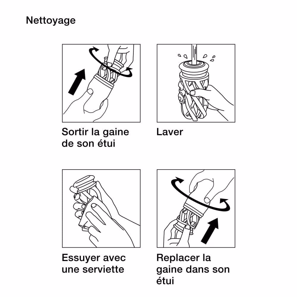 Tisztítása : minden használat előtt és minden használat után a betétet a tokból kivéve langyos szappanos vízzel és segédeszköz tisztítóval kell elmosni. Vízbázisú síkosító javasolt, melyből egy mintát a csomag tartalmaz.