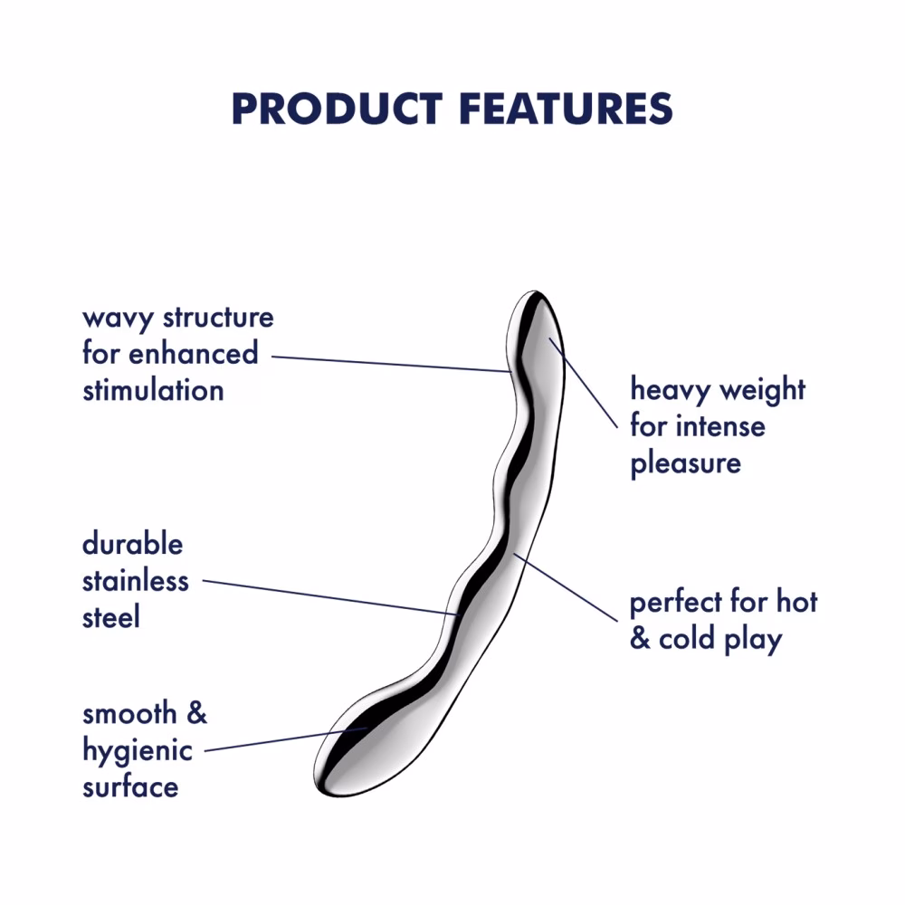 A Satisfyer Cosmic Crest 2 meghívja Önt egy csillagközi utazásra, ahol a tiszta élvezet várja. A sima, masszív rozsdamentes acélból készült, hipnotikus hullámszerű textúrával ellátott, elegáns acél dildó mély, ritmikus stimulációt nyújt, amely a legérzékenyebb belső zónákat célozza meg, különösen a G-pontot. Minden görbe, minden hullám pontosan úgy van kialakítva, hogy pontosan fokozza az Ön örömét.