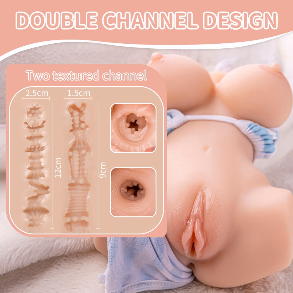 férfiaknak ajánlott, mellet, vaginát és ánuszt formázó testnyílással