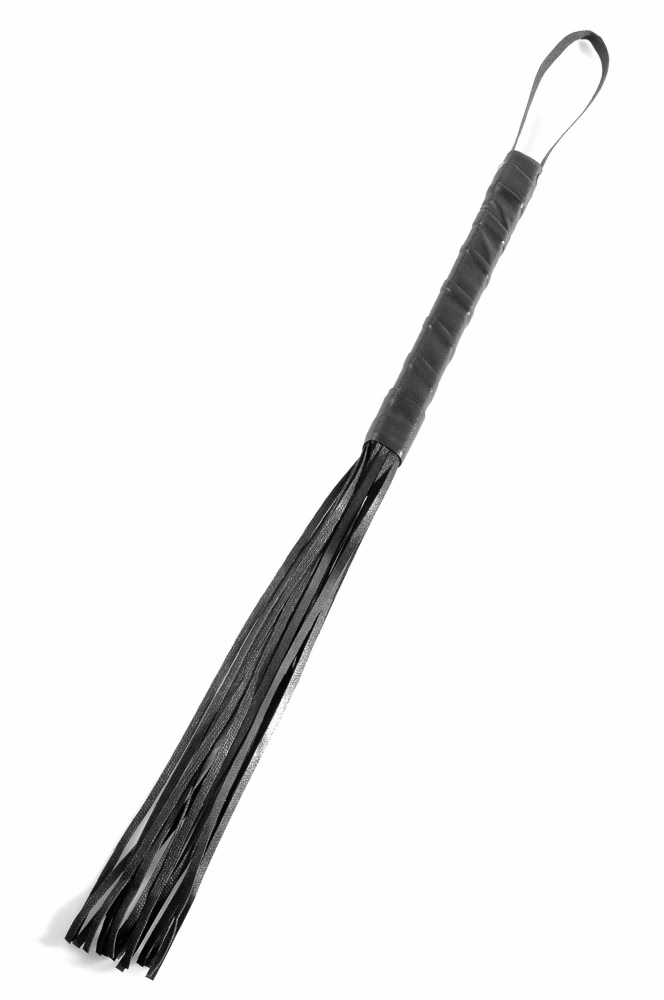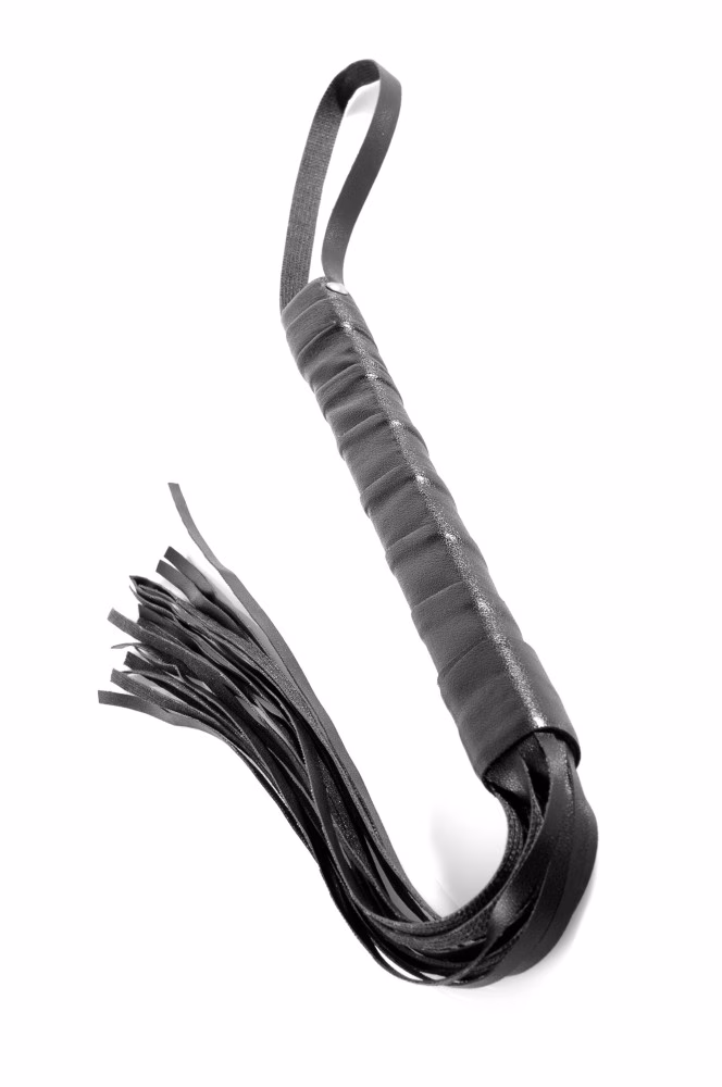 Korbács, mely S/M szex, fetish játékok és szerepjátékok kiegészítője lehet. A szíj és a pántok könnyen tisztítható, puha hátú vinylből
