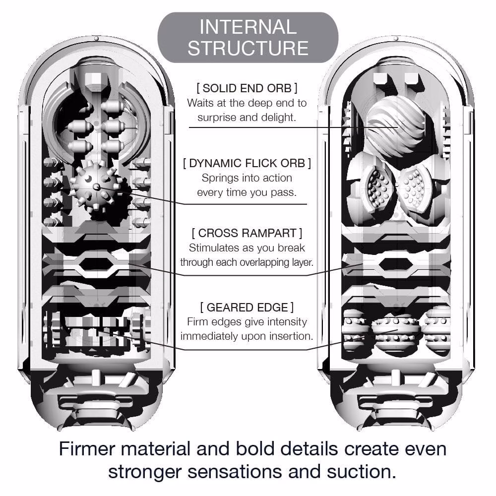 Prémium minőségű, férfiaknak ajánlott, szétnyitható, karcsú vonalvezetésű egyéni erotikus játék, melyben a két oldalt nyomva lehet a vákuum hatást létrehozni. Felső részén egy szelep biztosítja a levegő kiáramlását. Öntsünk egy adag síkosítót a maszturbátorba, majd helyezzük bele a péniszt. Használatával az aktus közbeni önkontroll nagy mértékben fejleszthető, így annak ideje jelentősen növelhető.