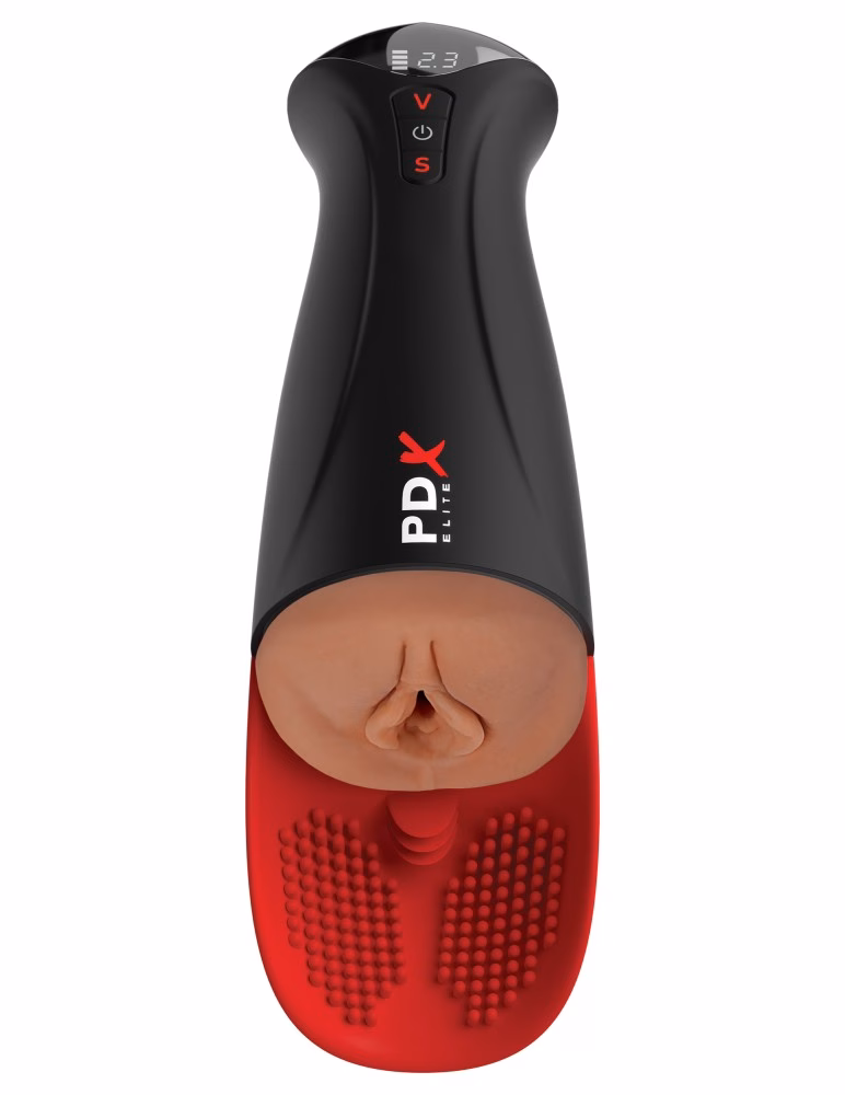 kialakított, LED-es kijelzővel felszerelt maszturbátor, here stimulátorral.