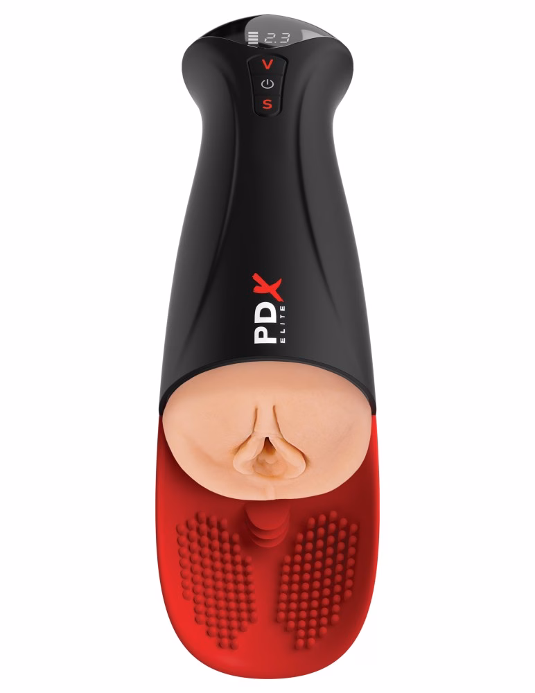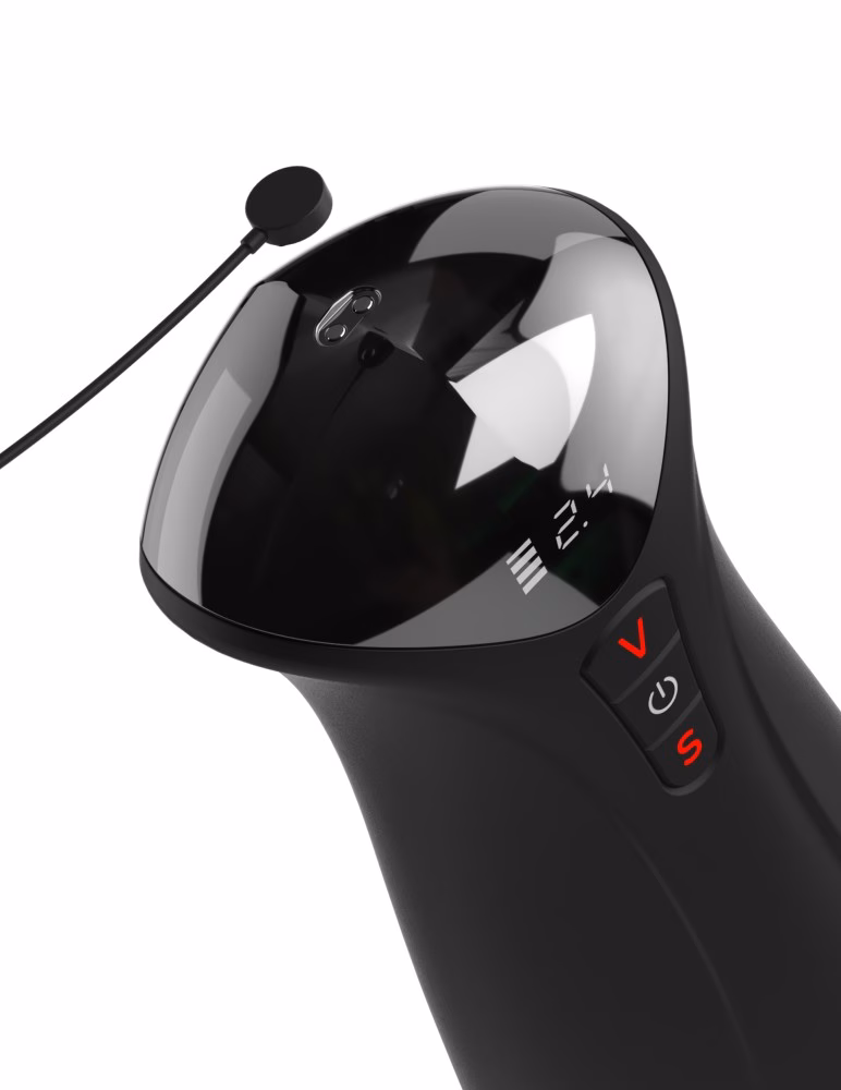 kialakított, LED-es kijelzővel felszerelt maszturbátor, here stimulátorral.