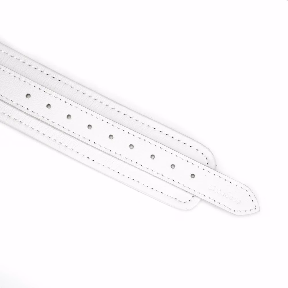 rugalmas, tiszta fehér bőrből készült extravagáns bondage nyakörv elegáns