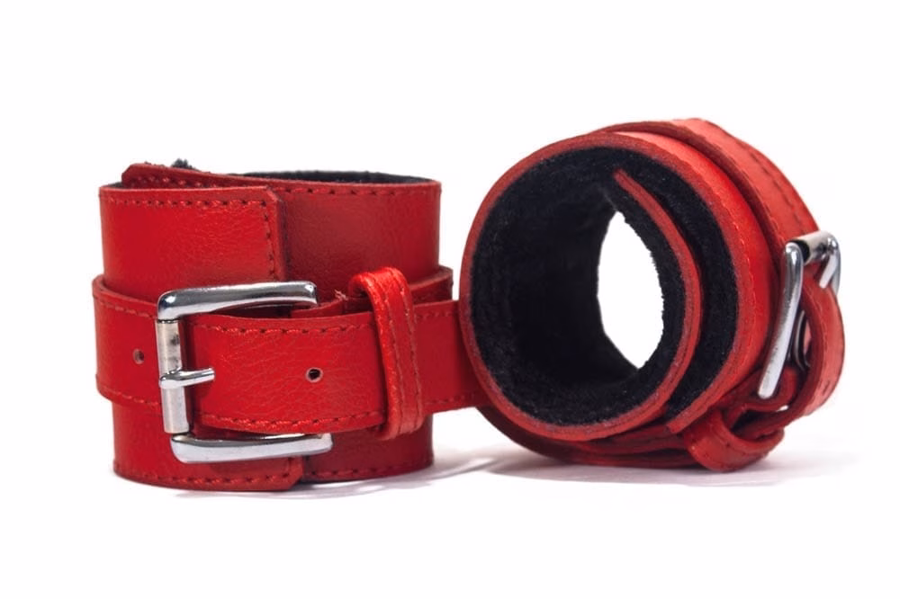Hand Cuffs Grain Leather Red/Black bilincs