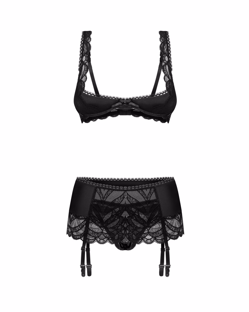 Lecille 3-pcs crotchless set – L/XL fehérnemű szett