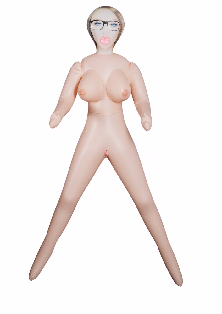 Valósághűen megformált, felfújható baba, fotó jellegű arccal,