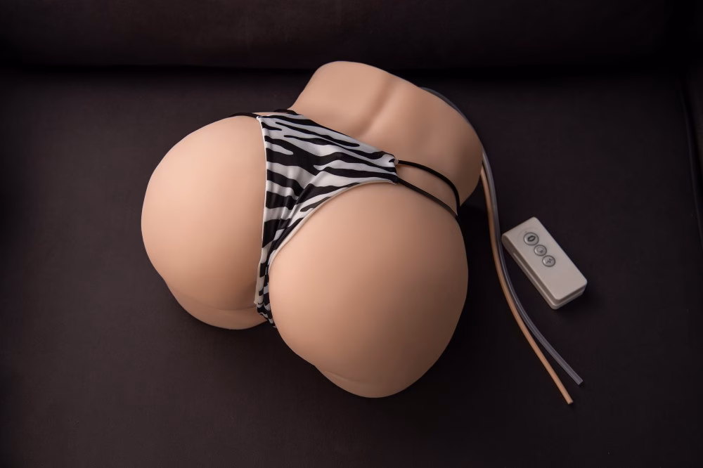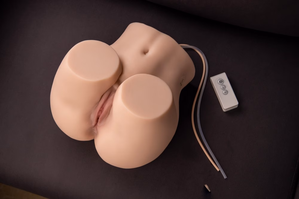 Kiváló minőségű, puha, bőrszerű anyagból készített, férfiaknak ajánlott, mellekkel, vaginát és ánuszt formázó testnyílással kialakított erotikus játék, 5 rezgési és 5 szívó funkcióval, vezeték nélküli távirányítóval.