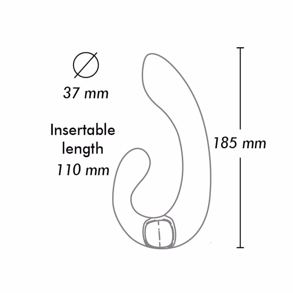 Luxus kategóriájú, ergonómiailag megformált, kiváló minőségű anyagból készített, stimuláló felülettel kialakított, rugalmas fejjel ellátott, 5 sebességi és 10 vibrációs funkcióval és ezekhez szinkronizált világítással rendelkező, két motorral felszerelt, a g-pont izgatására is alkalmas, csiklóizgatós, halk működésű vibrátor, exkluzív csomagolásban.
