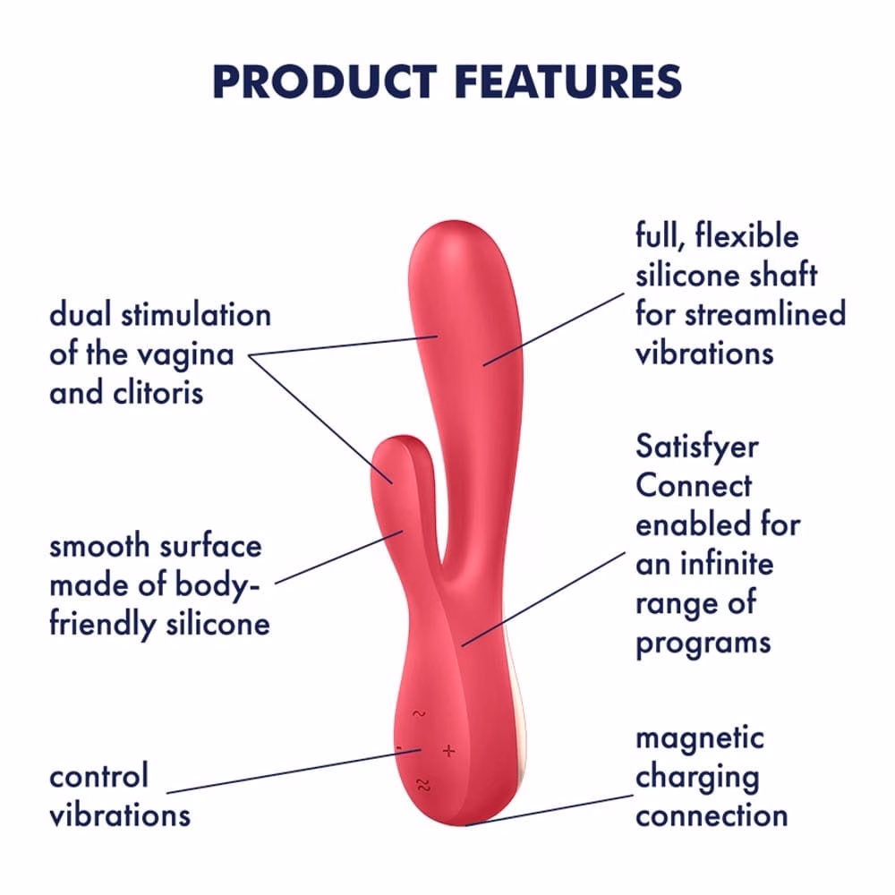 Okostelefonról irányítható, ergonómiailag kialakított, két motorral felszerelt vibrátor a díjnyertes Satisfyer Connect alkalmazással, mely a csikló és a g-pont együttes stimulálására is használható. Az applikáció segítségével egyedi rezgési funkciókat lehet alkotni, akár zenei ritmusból (pl. Spotify), saját vagy párunk hangjából vagy környezeti zajokból is, amelyeket meg is lehet osztani másokkal. Biztonságos video chat kapcsolatot is kezdeményezhet, így akár partnere is irányíthatja az eszközt, miközben láthatják is egymást. A kezelőgombok segítségével természetesen applikáció nélkül is használható.