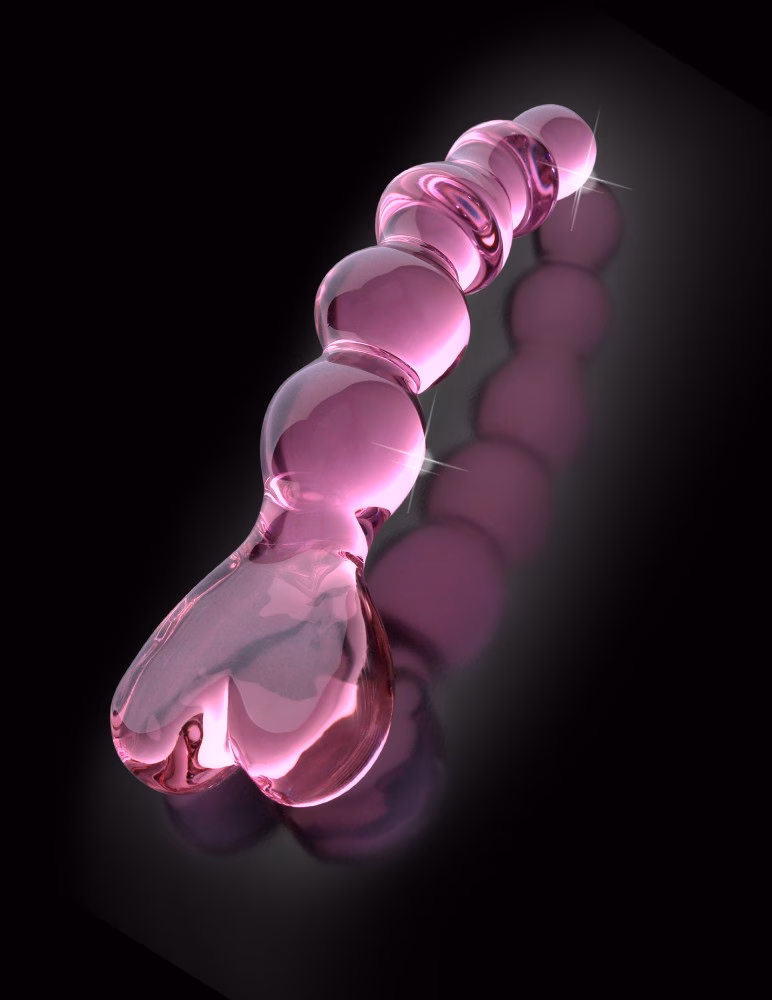 Hipoallergén bór-szilikát üvegből kézzel készített, 5 eltérő méretű gömbből álló dildó, szív alakú fogóval. Uniszex, férfiaknak és nőknek egyaránt ajánlott. A termék nem porózus, lehűthető és melegíthető is.Tisztítása : minden használat előtt és minden használat után langyos szappanos vízzel és segédeszköz tisztítóval kell lemosni. Víz- és szilikonbázisú síkosítóval is kompatibilis, ezek használata javasolt.