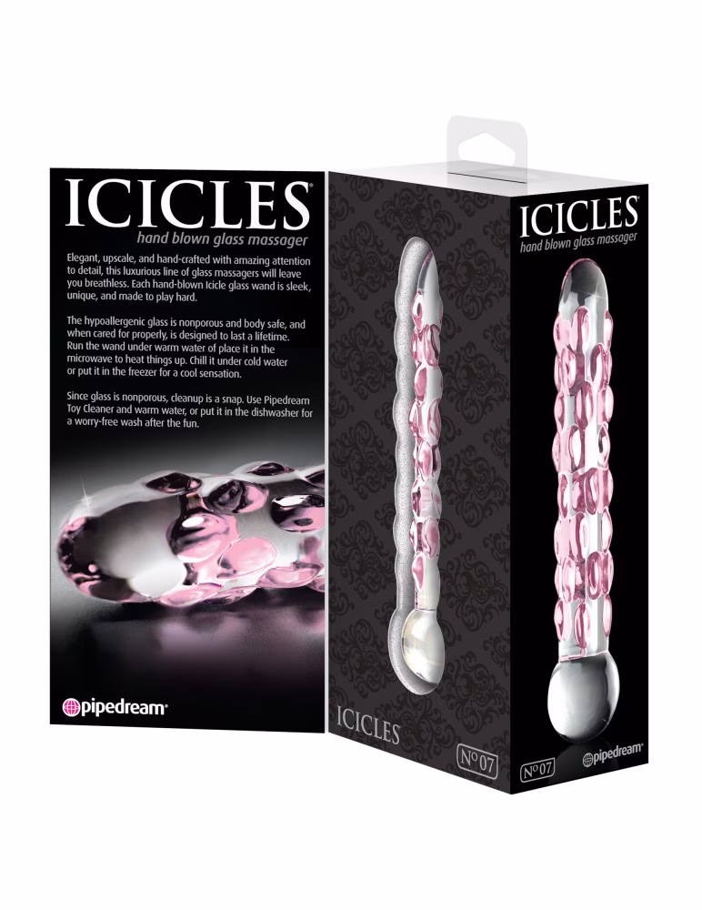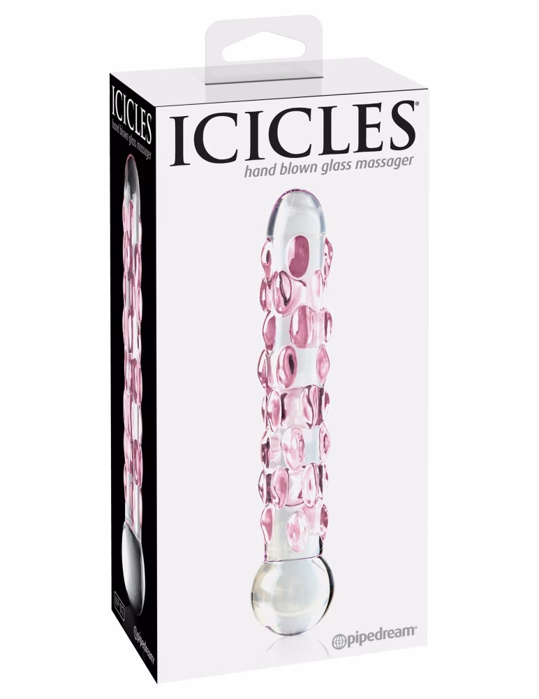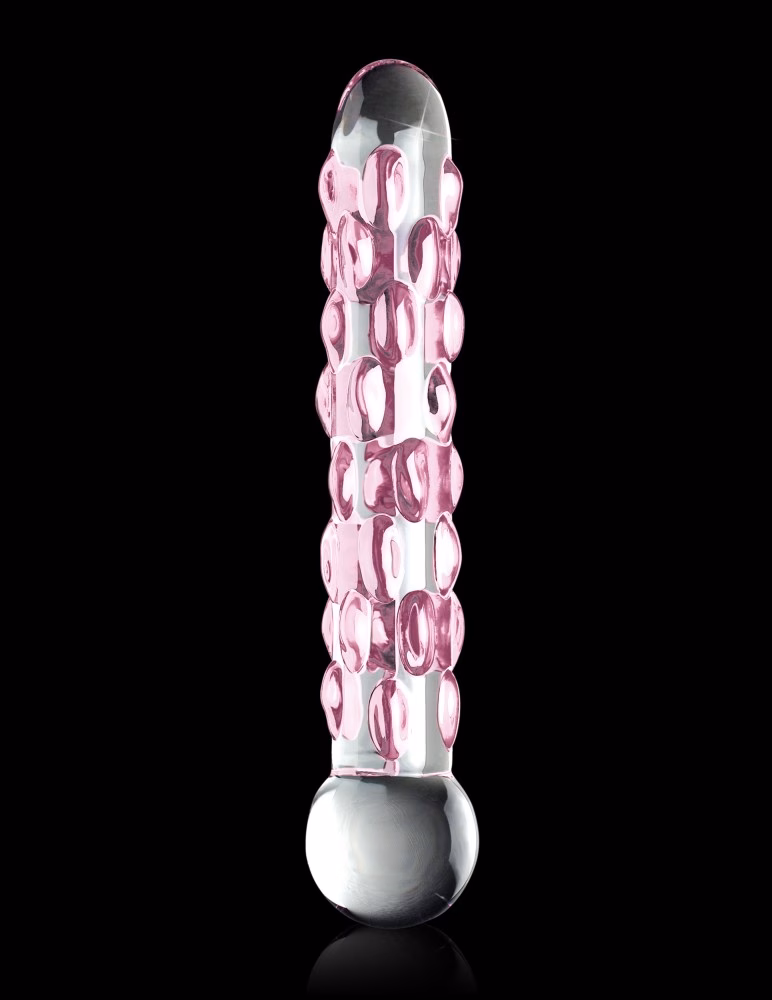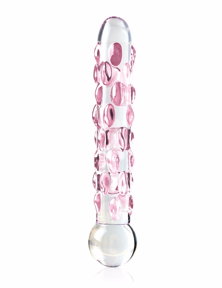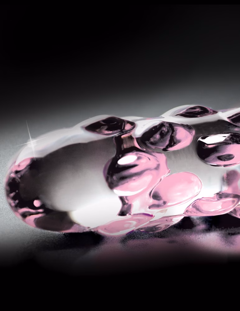 Bór-szilikát üvegből kézzel készített, pénisz formájú, apró gömbökkel stimuláló, motor nélküli dildó. Uniszex, férfiaknak és nőknek egyaránt ajánlott. A termék nem porózus, lehűthető és melegíthető is.Tisztítása : minden használat előtt és minden használat után langyos szappanos vízzel és segédeszköz tisztítóval kell lemosni. Vízbázisú síkosító javasolt.