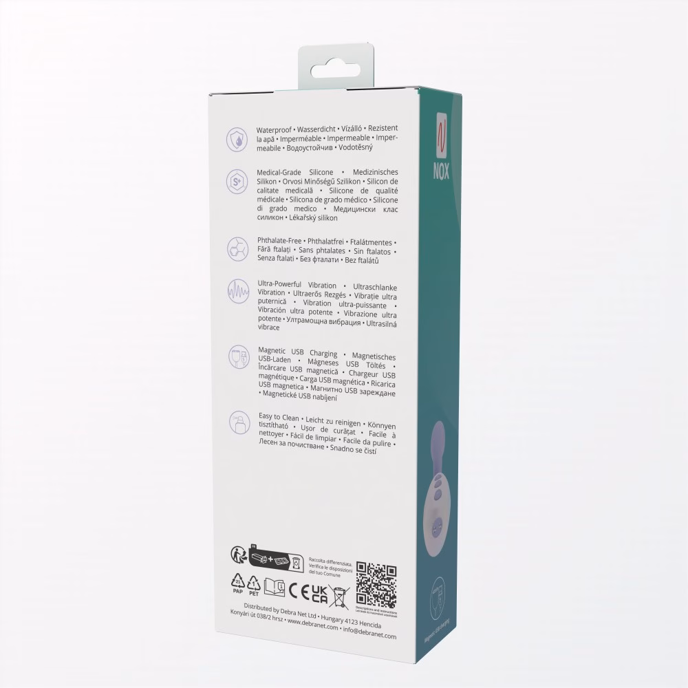 kezelhető vibrátor. A mágneses USB töltő a dobozban található.