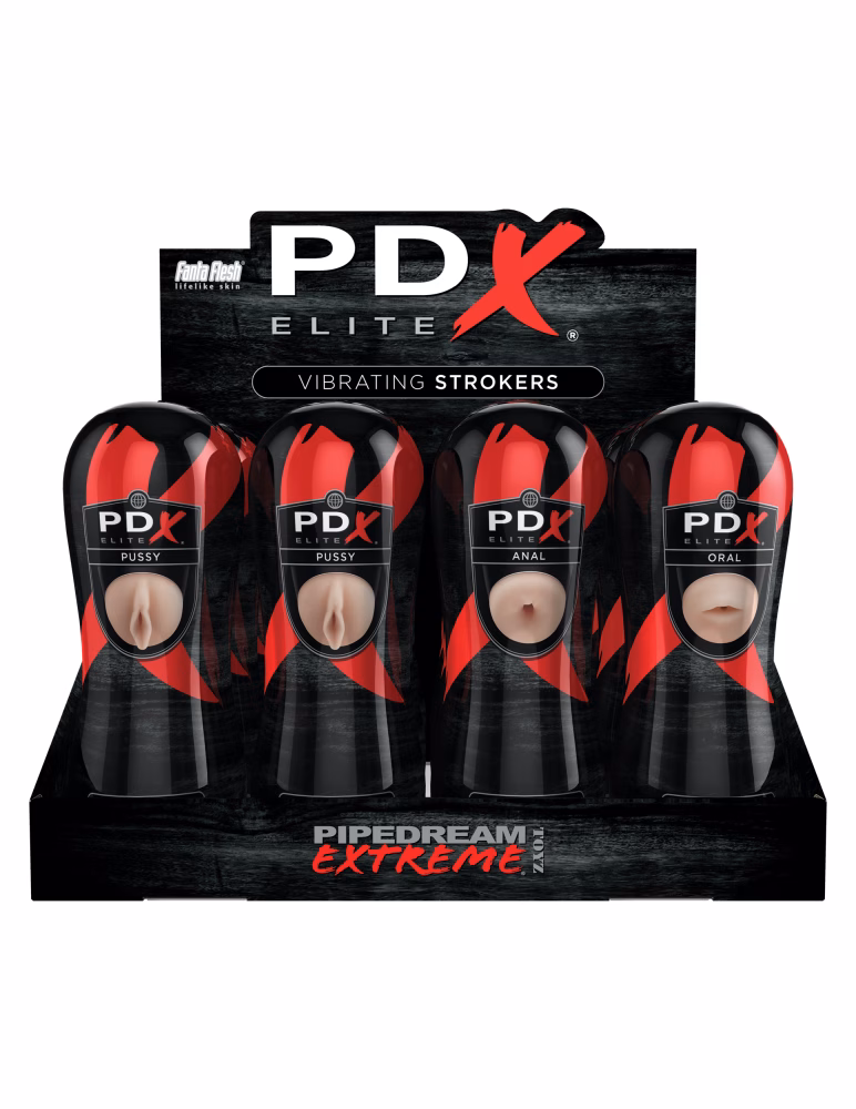 Pipedream Extreme Elite Vibrating Stroker Display – 12 pcs Light/Black vagina és anál maszturbátor
