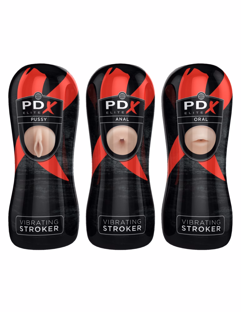 Ez a bemutató készlet 12 Vibrating Stroker maszturbátorból áll, 6 vaginát formázó és 3-3 ánuszt illetve szájat formázó testnyílással.