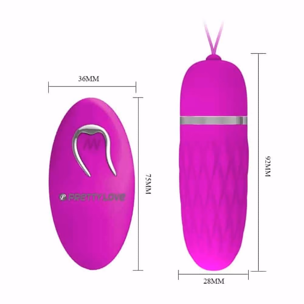 Bőrbarát anyagból készített, könnyen kezelhető, vezeték nélküli távirányítóval szabályozható, 12 rezgési funkcióval rendelkező vibrátoros tojás, biztonságos kihúzózsinórral. A távirányító hatótávolsága 10 méter.