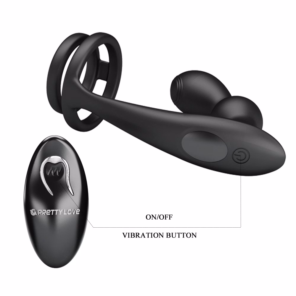 gyűrű, mely elősegíti a merevedés fenntartását viselője számára, biztonságosan csatlakoztatott vibrációs fenékdugóval. A fenékdugó 12 rezgési funkcióval