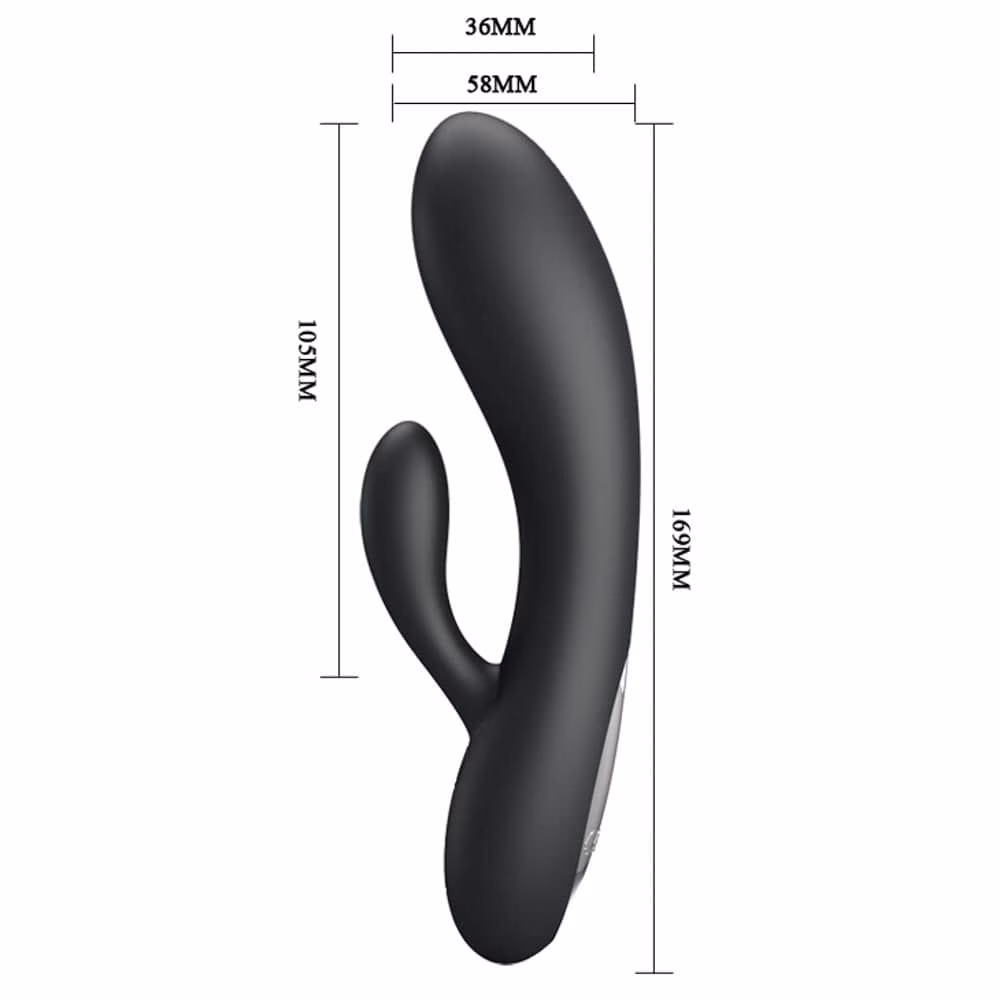 Kezdőknek is ajánlott, puha, bársonyos felületű, könnyen kezelhető, 30 rezgési funkcióval rendelkező, a g-pont stimulálására is használható, csiklóizgatóval kiegészített, kétmotoros vibrátor.
