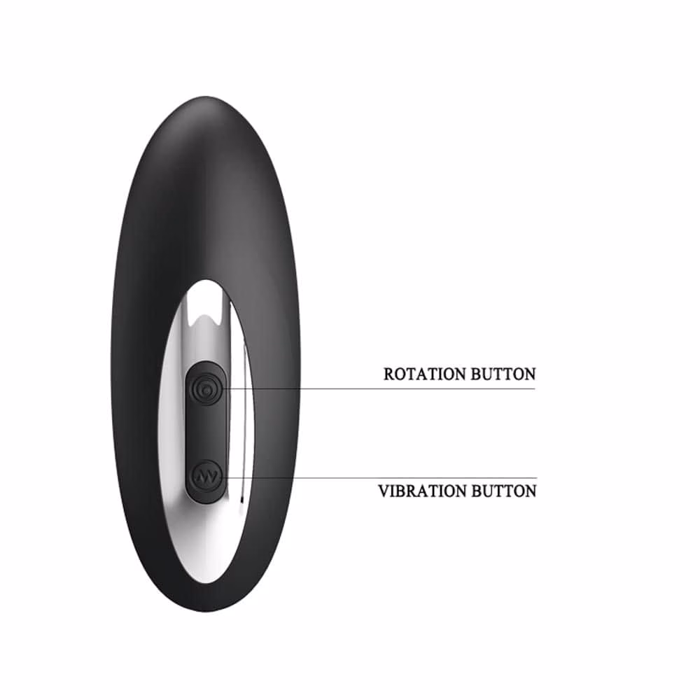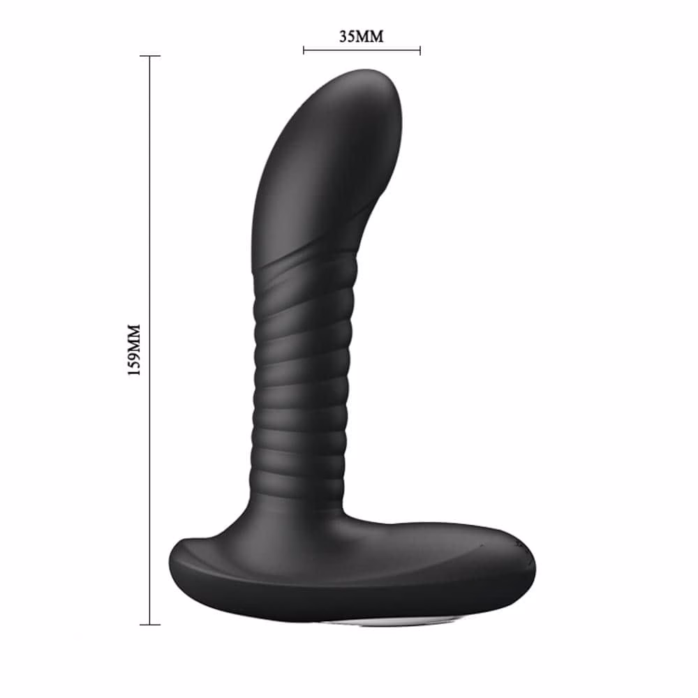 Kiváló minőségű anyagból készített, anatómiailag tökéletesen formált, memória funkciós, vibrátoros prosztata és perineum masszírozó, ideális íves kialakítással, tizenkét vibrációs, három forgási funkcióval, kiszélesedő talppal a biztonságos behatolásért.
