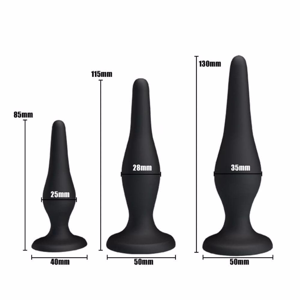 Tartalma : 8,5 cm hosszú, 2,5 cm átmérőjű, 11,5 cm hosszú 2,8 cm átmérőjű, 13 cm hosszú, 3,5 cm átmérőjű fenékdugó. Tapadókorongja segítségével sík felületen rögzíthető. Kezdőknek is ajánlott.