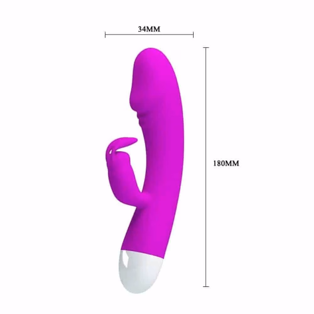 Magas minőségű anyagból készített, luxus kivitelű, karcsú, ergonómiailag kialakított, könnyen kezelhető, 30 rezgési funkcióval rendelkező, a g-pont stimulálására is használható, nyuszi formájú csiklóizgatóval kiegészített vibrátor. Kezelőgombja a sötétben világít.