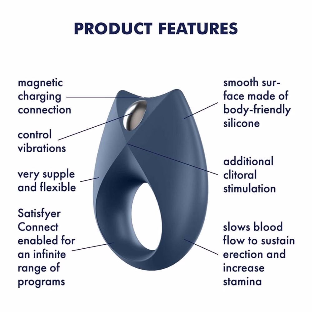 Kényeztesd magadat és kedvesedet a Satisfyer Royal One eszközzel: A csiklóizgatóval ellátott péniszgyűrű testbarát szilikonból készül, és mindkét partnert kényezteti. A péniszre helyezve fokozza az erekciót és késlelteti a magömlést a maximális élvezet érdekében. A finom kialakítású csiklóizgató minden lökés során a csiklóra simul és további stimulációt biztosít.