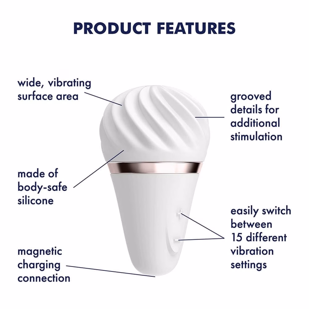 Orvosi minőségű szilikonból készült, bőrbarát, 10 rezgési funkcióval (4 rotációs ritmus, 3 bal és 3 jobb forgási sebesség) rendelkező, egyedi, fagylalt formájú csiklóizgató, de külső erogén zónák (mellbimbó, here) stimulálására is használható. Könnyen kezelhető, kompakt méretéből adódóan bárhová magával viheti.
