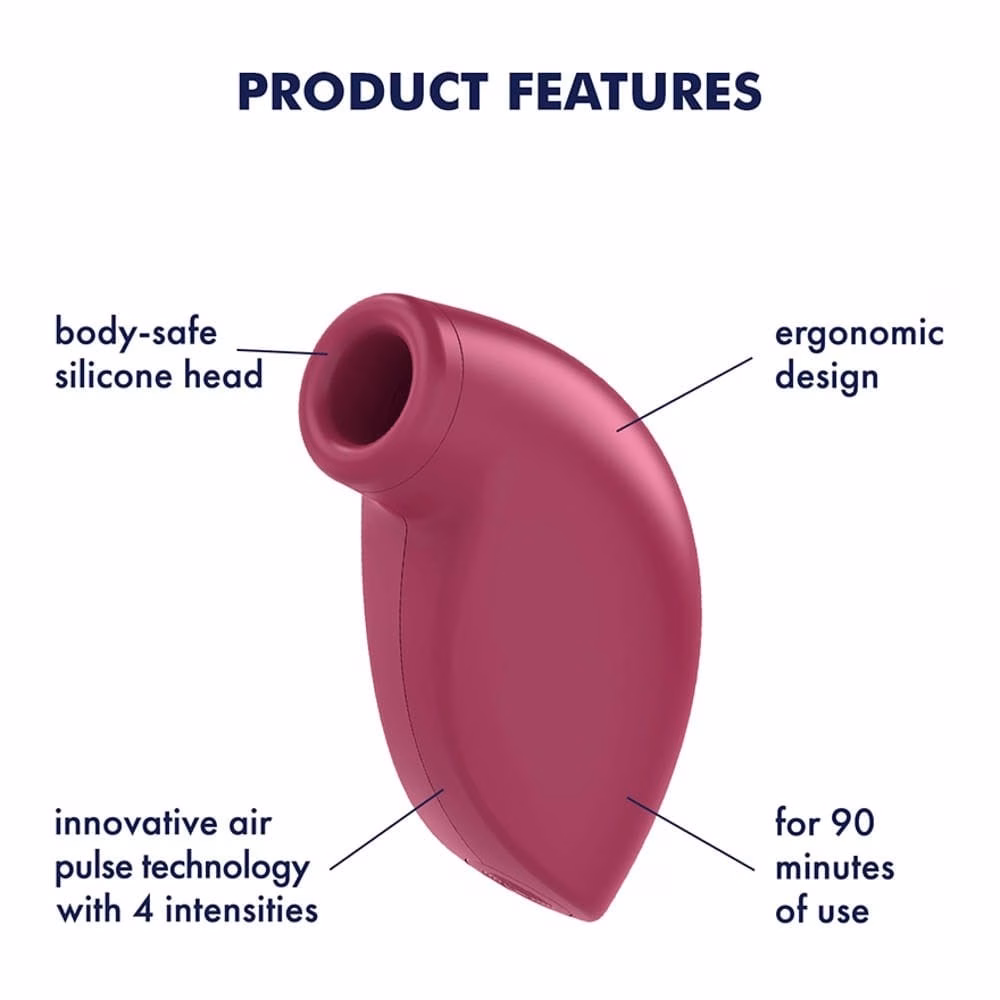 Kiváló minőségű anyagból készített, eldobható, 35 percig működtethető léghullámos csiklóizgató, 4 szívó funkcióval. Könnyen kezelhető, egy gombbal vezérelhető, elemei nem cserélhetőek.