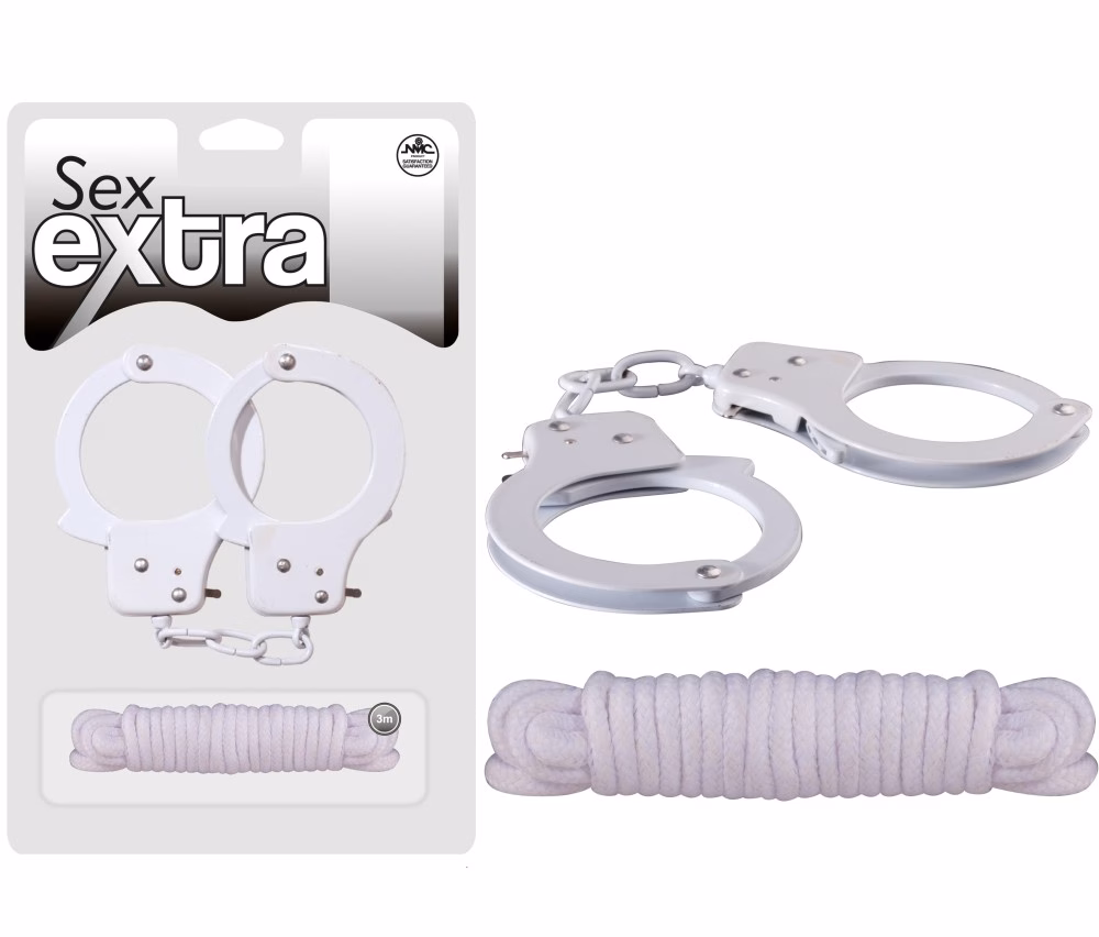 SEX EXTRA – METAL CUFFS & LOVE ROPE WHITE kötözőkötél