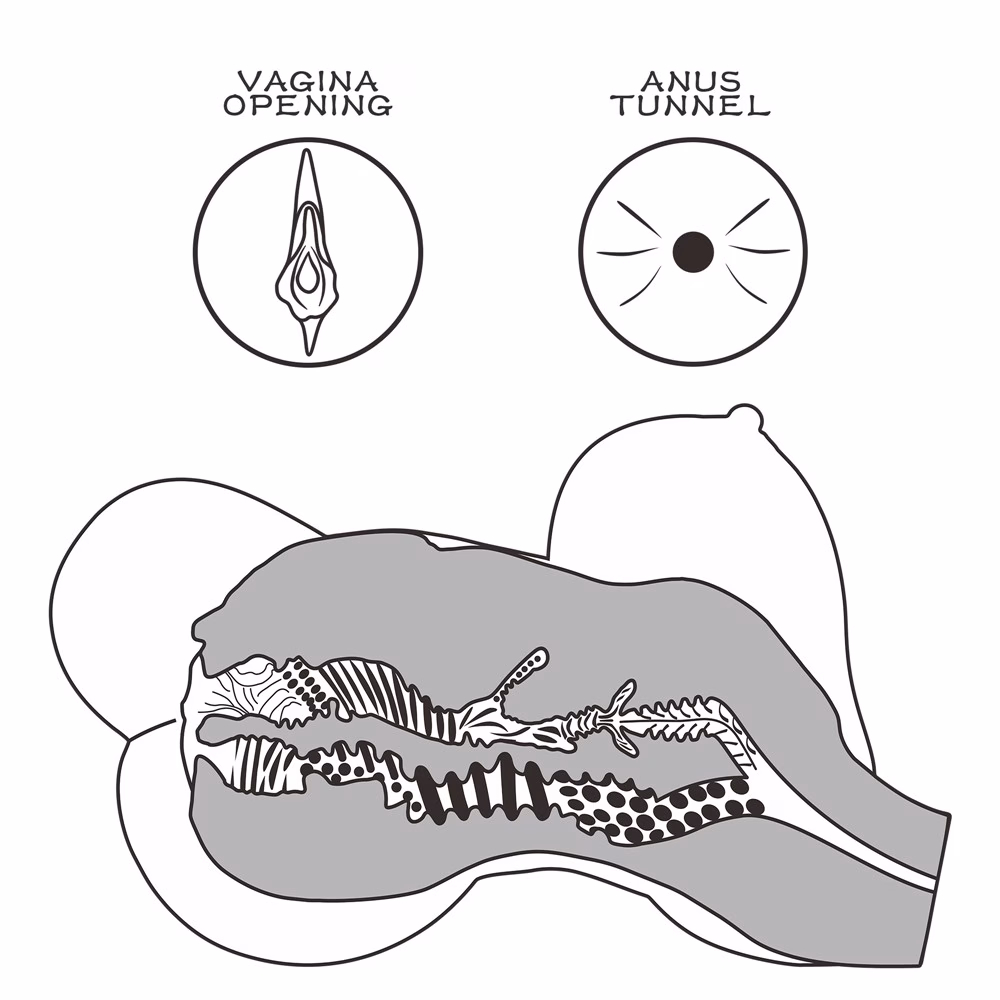 kialakított, ánuszt és vaginát formázó testnyílásokkal és mellekkel ellátott