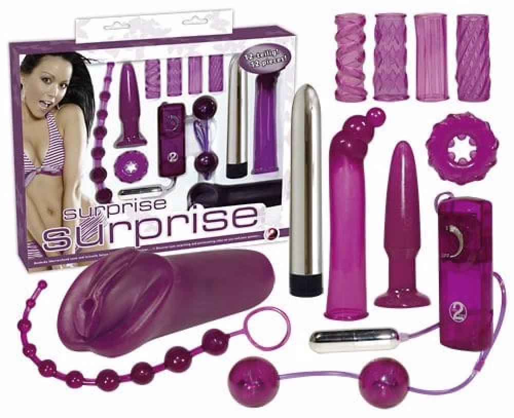 Tartalma : 17 cm hosszú, 2,6 cm átmérőjű vibrátor, 35 cm hosszú, 2,5 cm átmérőjű golyósor, 11,5 cm hosszú 2,6 cm átmérőjű fenékdugó, 13,5 cm hosszú maszturbátor, 3,3 cm átmérőjű gésa golyó, 2 cm átmérőjű péniszgyűrű, 6 cm hosszú, 1,6 cm átmérőjű tojás, 16,5 cm hosszú, 2,6 cm átmérőjű péniszköpeny, 5 cm hosszú, 1,3 cm átmérőjű péniszköpeny.
