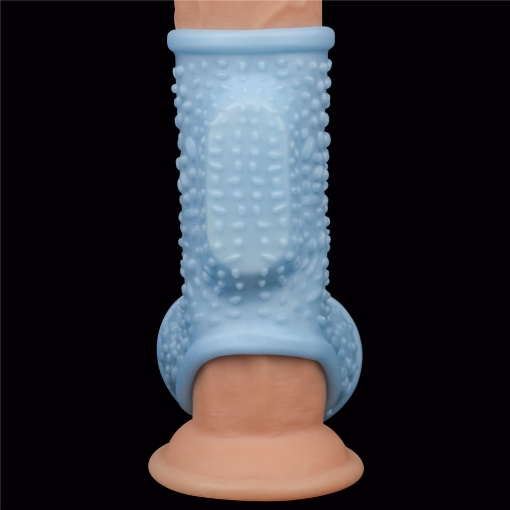 Vibrating Drip Knights Ring with Scrotum Sleeve Blue péniszmandzsetta