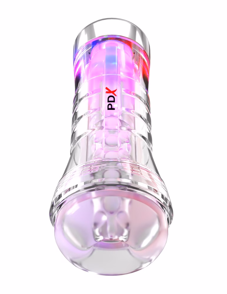 fokozására is tervezett, átlátszó, LED-es világítással felszerelt maszturbátor,