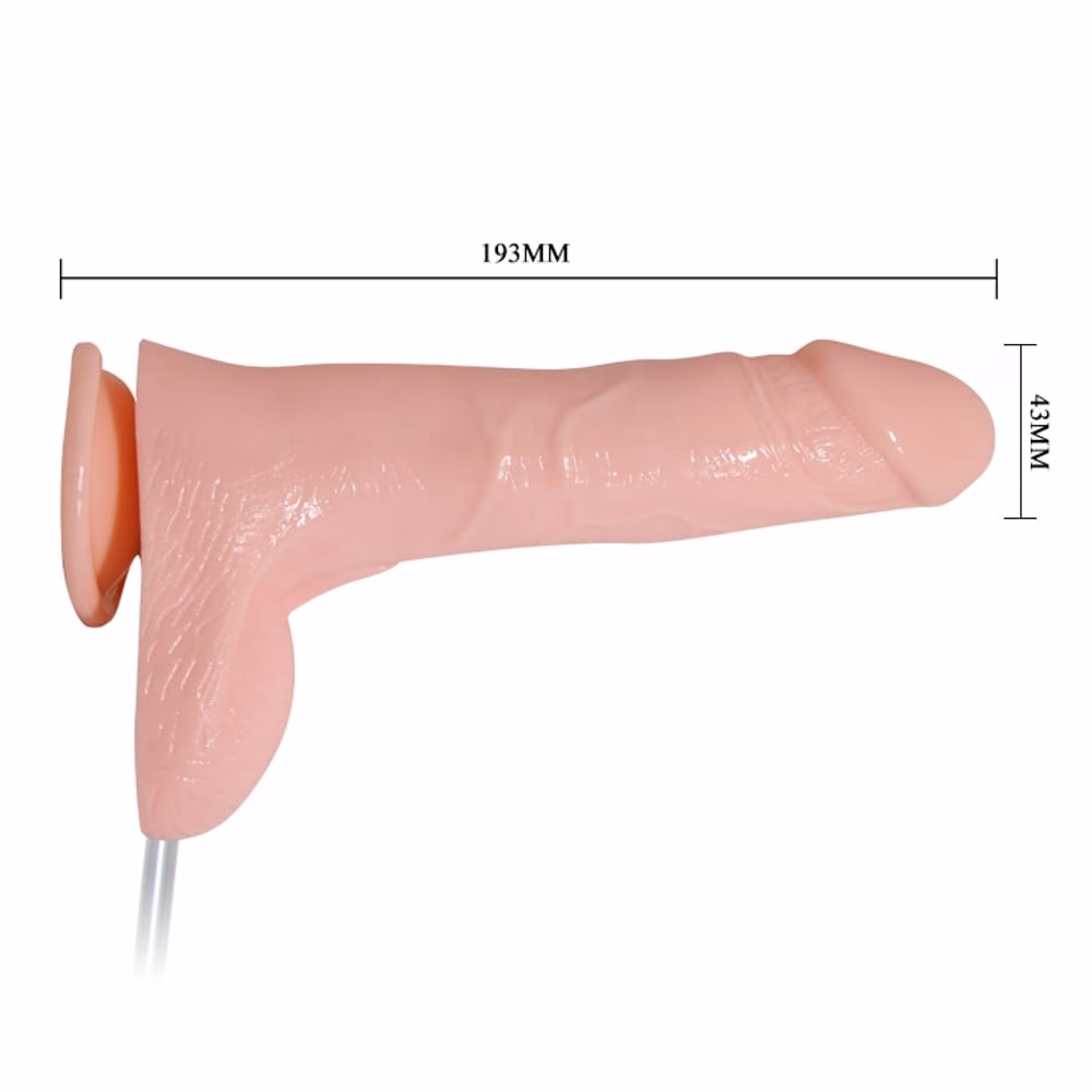 Realisztikus kialakítású, flexibilis, bőrszerű tapintású anyagból készült, állítható rezgéserősségű, távirányítós, erezett felületű, herékkel kiegészített vibrátor. Tapadókorongja segítségével sík felületre rögzíthető.Pumpa segítségével folyadék kibocsátására is alkalmas. ( meleg víz, hígított intim tisztítószer, vagy hígított vízbázisú sikosító)