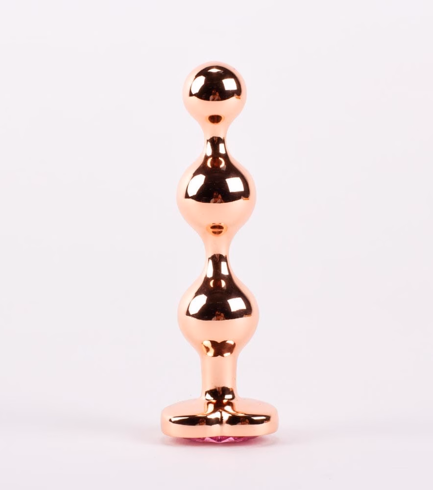 Záróizom tágító, lazító eszköz, amely 3, eltérő átmérőjű gömbbel van kialakítva. Uniszex, férfiaknak és nőknek egyaránt ajánlott. A fényes fémfelület könnyen csúszik és nagyon kényelmes behatolást tesz lehetővé. Az alap szív formájú és gyémánt textúrájú.